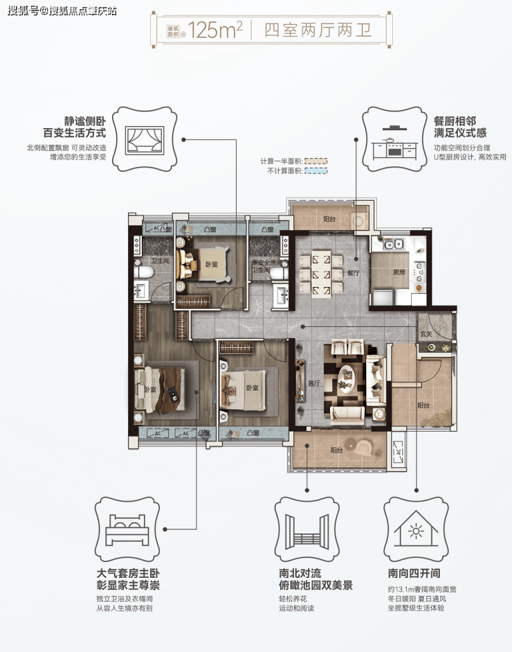 9重礼仪空间序列:迎宾广场、中轴水景、邻里花园,架空层会所等,恭迎主人归来。