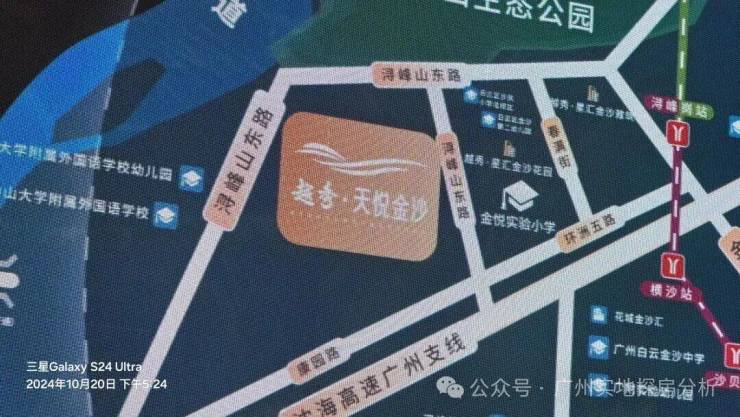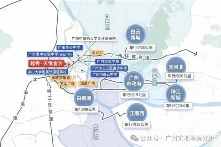 项目位于广州市白云区金沙洲板块,紧邻荔湾区,是越秀地产打造的天字系高端项目。