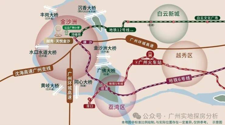 项目距离地铁6号线浔峰岗站约2.5公里,如果需要地铁出行的基本就不太现实,广州地铁12号线已经通车,不仅能缓解6号线金沙洲段严重拥挤的问题,还能大大缩短金沙洲到白云新城的通勤时间。
