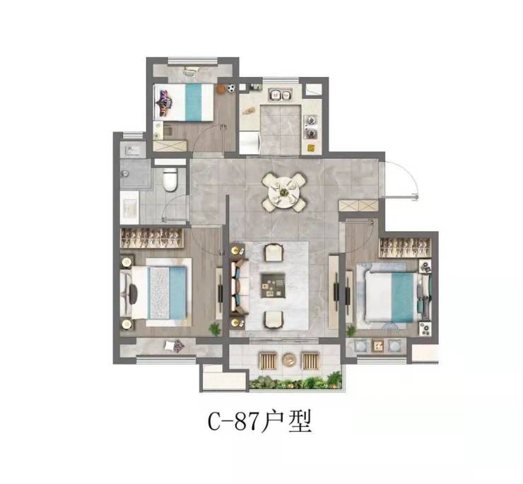 建面约76-104㎡2~3房