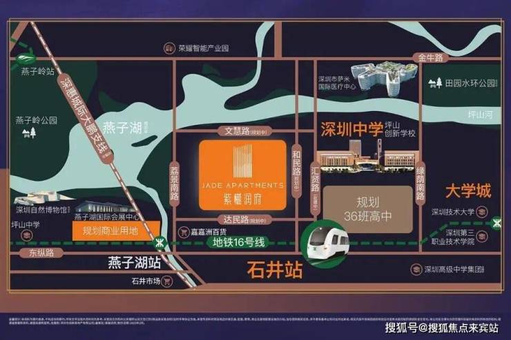 深圳华润紫樾润府项目位置:深圳市-坪山新区-石井街道和民路与规划达民路交汇处(16号线石井站约300米)