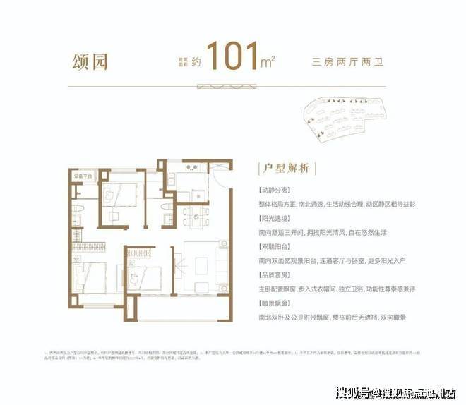 在101㎡三房两厅两卫户型中,除了完美继承89㎡户型高利用率、大飘窗等优势外,还增加了独立玄关和玄关收纳,主卧设计独立卫生间,居住体验更上一层楼。