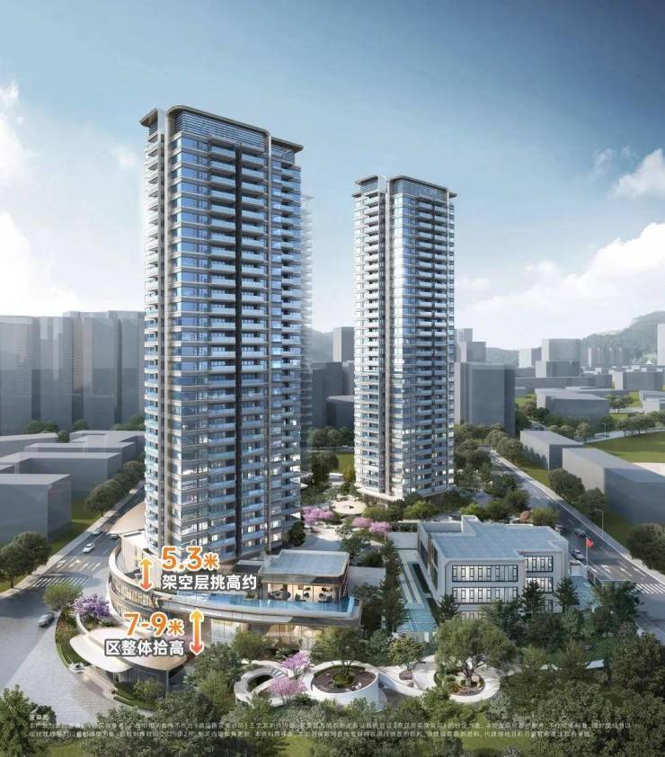 以往的海珠西,两三栋楼的小区,通常没有社区花园,但中建天钰不仅配备花园,甚至还将楼盘整体抬高约7~9米:架空层也挑高了5.3米,而且整体抬高后,项目起步楼层相当于周边4-5楼,视野采光更好,基本上不存在低楼层。