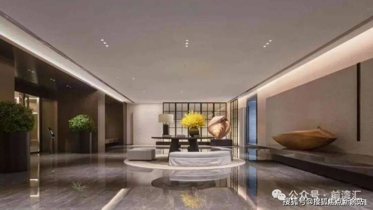 顶奢酒店式入户大堂,石材铺装,打造尊崇的三重归家礼序,开敞阔绰奢豪,点缀多元艺术美陈。