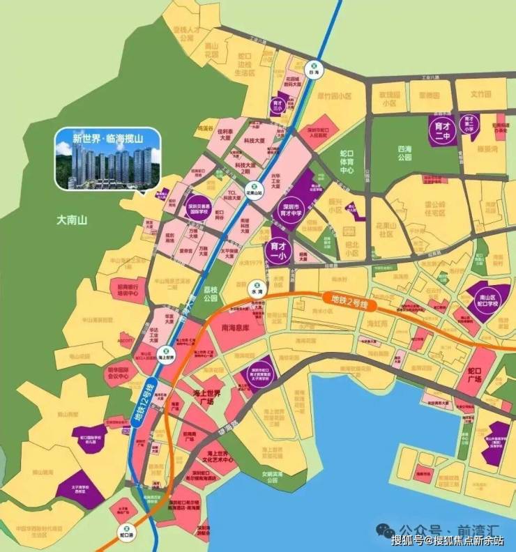交通配套:12号线花果山站(步行距离约700米)、地铁2号线水湾站、海上世界站;南海大道及沿江高速;邮轮母港、蛇口港、深圳湾口岸。