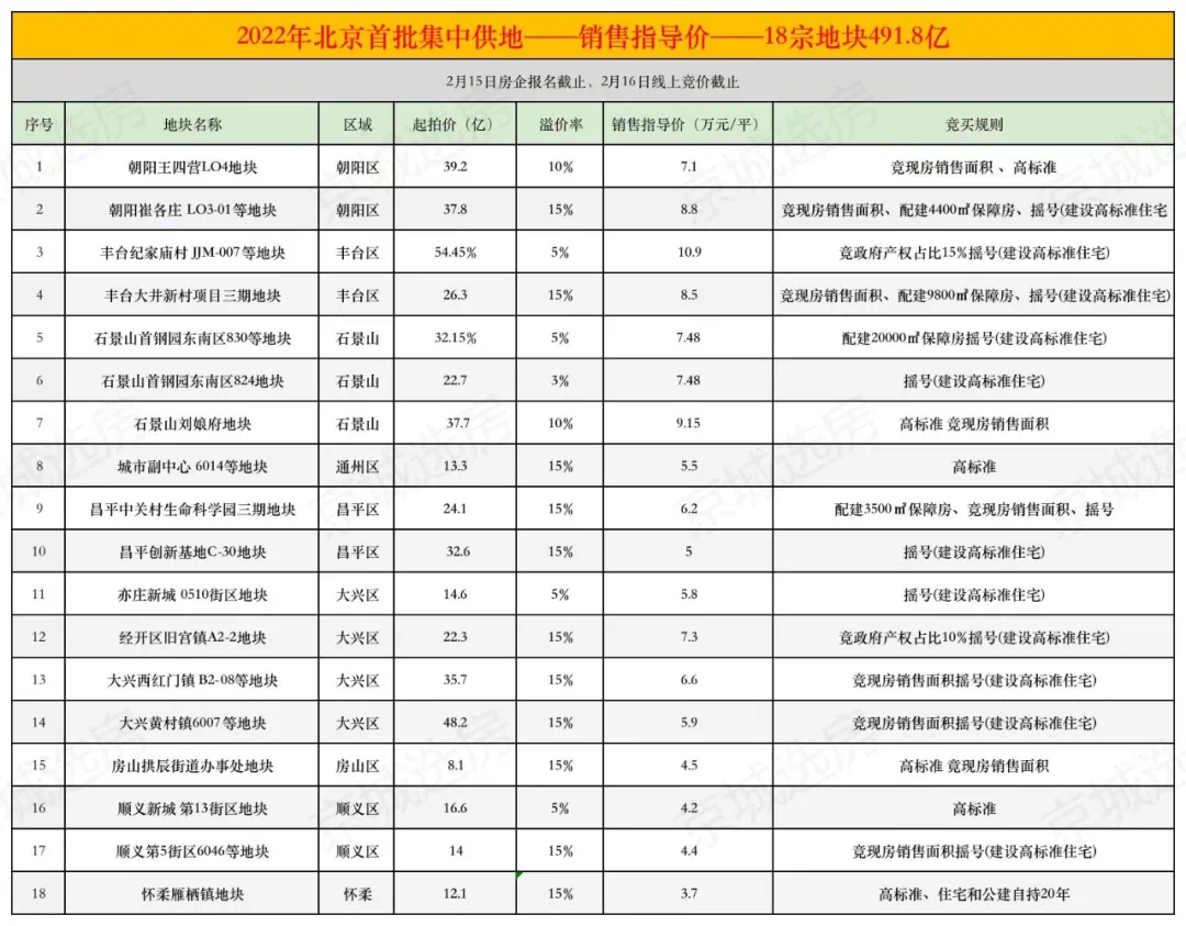 大家期待已久的2022首轮土拍终于要来了。就在昨天(2-15)下午,北京首轮18宗宅地房企报名截止。从名单上来看,这次一共吸引了56家房企或联合体参与。