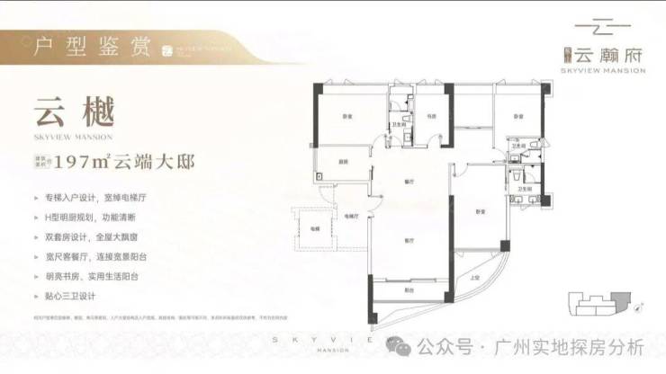4、居住舒适度高:住宅仅有74套,是三梯四户的低密设计,市中心9成新盘都难以达到此梯户比。所有户型均配备独立电梯厅,保证了居住的私密性。户型设计合理,建面约130-197平,超90%的高使用率,且全南向、全四房设计在越秀区极为罕见,部分户型四开间朝南,超15米南向面宽,能满足改善型需求。