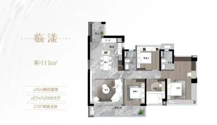 约130㎡四房,约15-16米南向四开间、LDKB一体化设计、270°江景主卧,用尺度与视野打破空间限制。