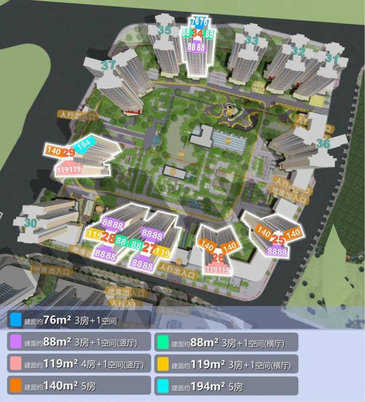 珠江花城加推六期34-35号楼,总层高26层,88㎡3+1房户型,相比于五期,优势是26层小高层,以及南向望花园。
