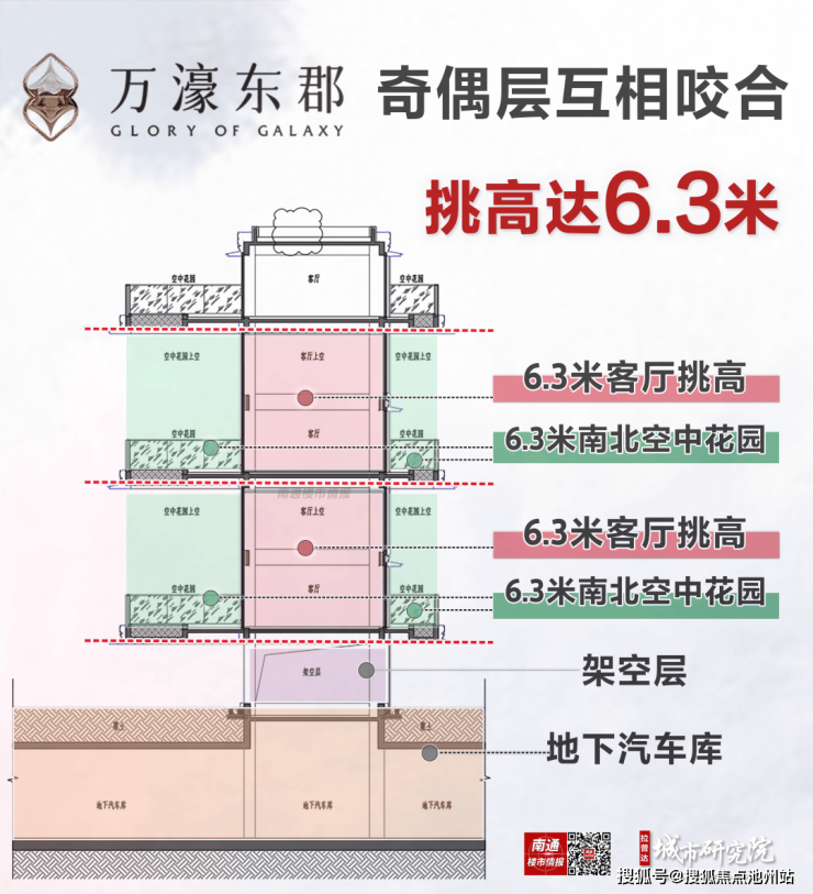 然而, 南通主城工农路旁的纯新盘 万濠东郡近期亮相,通过 奇偶层错位, 首次将6.3米挑高墅厅引入南通市场,打造出 四代宅的新物种,让买房人眼前一亮!