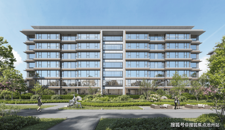 建筑美学立面,洋房立面采用浅灰色+香槟金的色彩搭配,带来现代简约的雅奢美感,很容易引起品位共鸣。