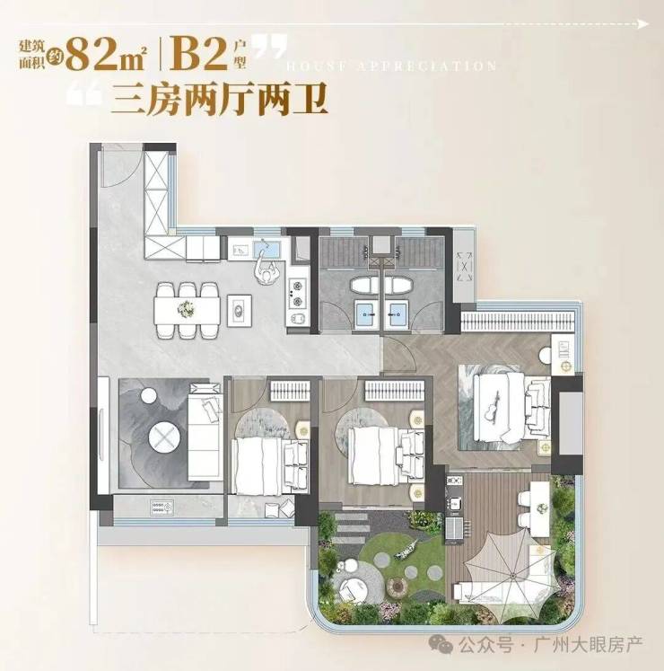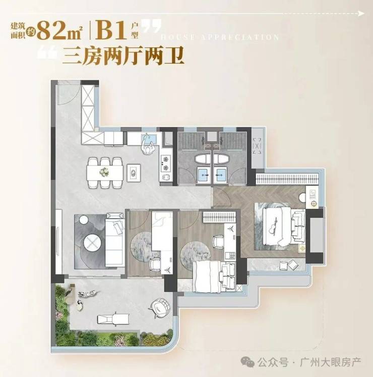 别人的85㎡做小三房一卫,招商的82㎡能做3+1房,未来在二手市场上也会更加有优势。