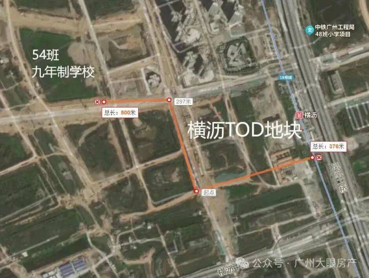 项目距离在建的54班九年制学校,距离就约500米