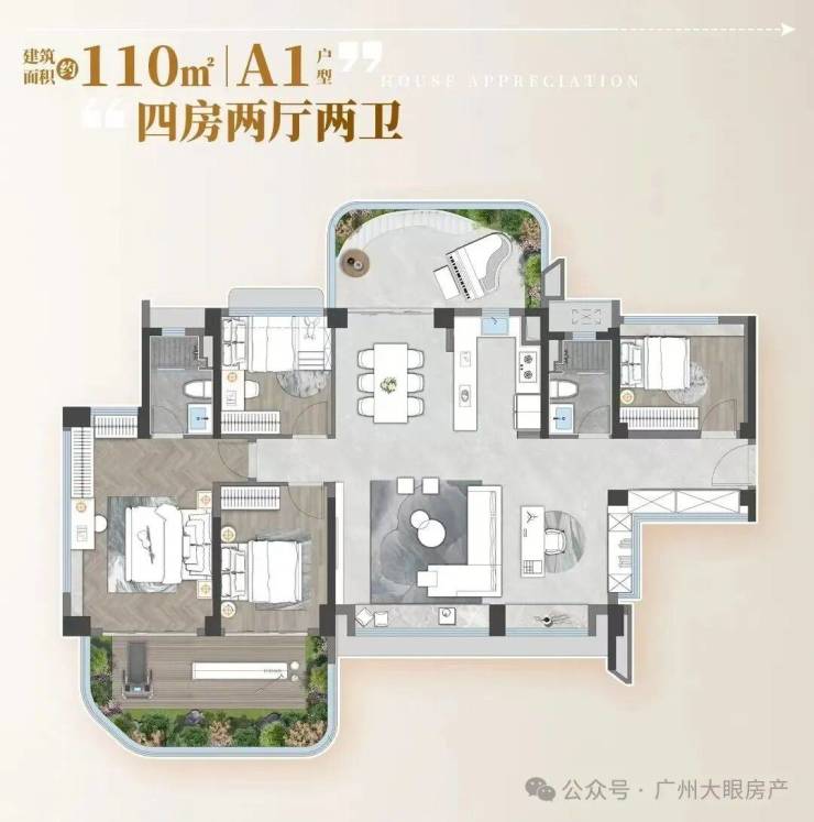 招商的拍地条件注定了,它会成为广州第一个拥有40%全赠送空中花园+25%阳台占比的新盘,使用率将会接近150%。