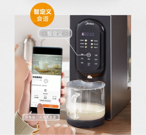 美的全自动破壁机可以连接美的美居APP,轻松获得海量持续更新的云食谱,不仅各种花样豆浆、杂粮米糊、果蔬汁、植物奶都能轻松搞定,还有专家研发的5款美味与营养共存的料包,丰富选择满足全家冬日热饮需求。