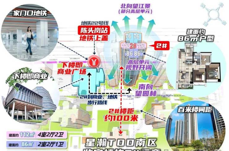 星瀚TOD家门口双地铁加持,已极具优势。项目位于22号线陈头岗上盖,走出家门就是地铁站,1站广州南、3站直达番禺广场,可换乘3号线、7号线、18号线、广佛2号线等,快速通达全城。