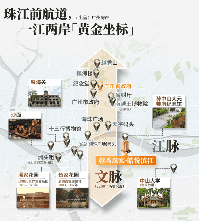 广州第一中轴是中国最古老的城市中轴线之一浓缩了广州 2200多年来生生不息的历史底蕴越秀珠实皓悦滨江择址老中轴大元帅府旁以广府系承接千年文明的鎏金坐标