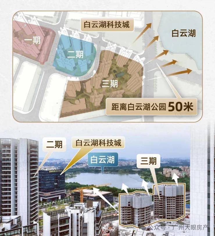 项目距离白云湖实际距离仅200米,约3000亩水体面积,是广州城央最大的人工湖,近10公里的绿茵跑道,业主都可以无缝享受,在家里就可以眺望白云湖的湖光风景。