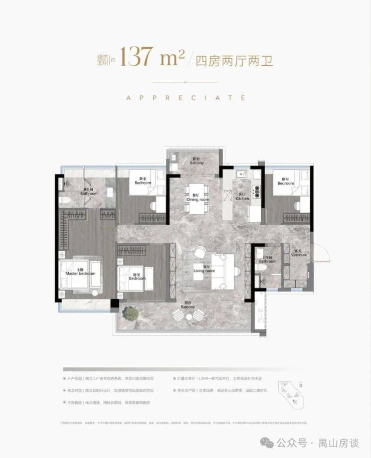 目前项目主推105-186㎡四房,全是超新规户型,使用率高达110-120%,每一寸空间都不浪费: