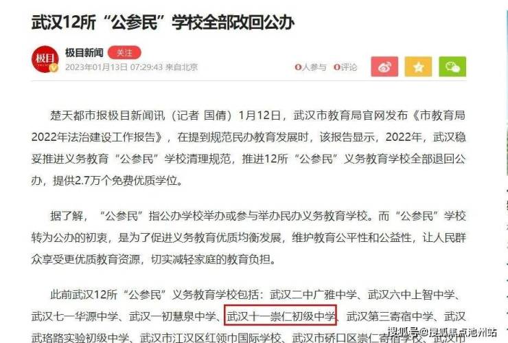 2024年7月武汉12所公参民学校改为公办,其中就有十一崇仁。