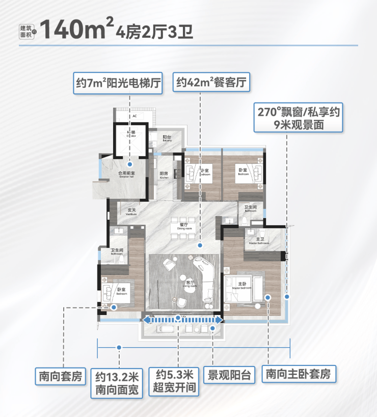 双主套、双阳台等设计,也同样为空间做“加法”,提升未来业主居住的生活质感。