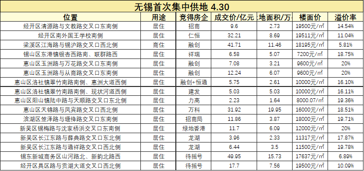从4月28日开拍,一直到4月30日,无锡首次集中拍地才完成16宗地的出让,最终成交总价255.96亿(其中有2宗待摇号地块)。