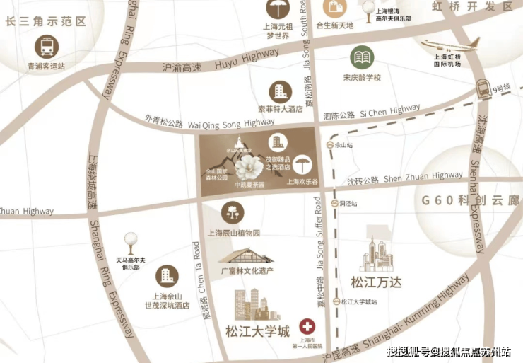 交通地铁:9号线洞泾站约3.2公里、佘山站约3.5公里;