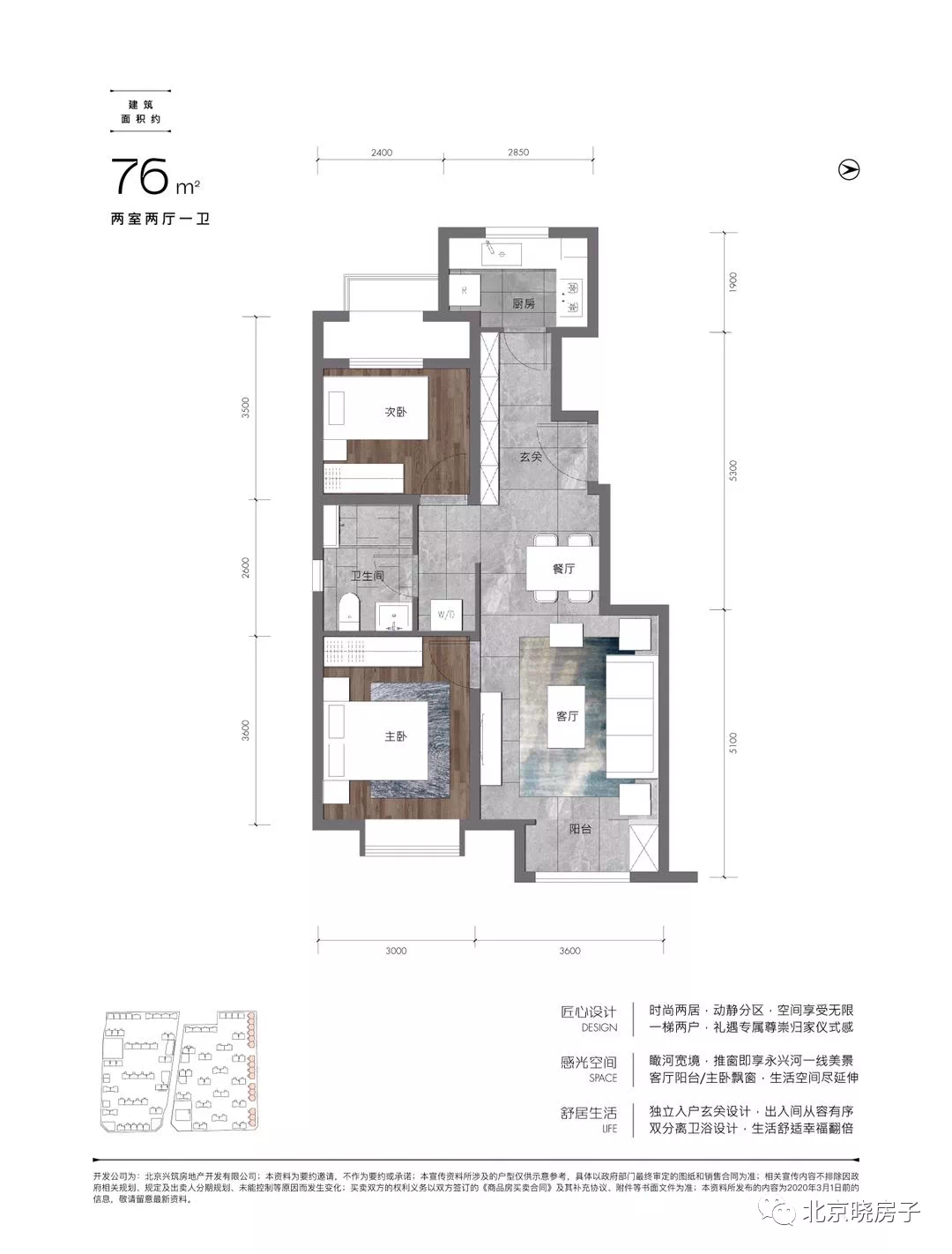 76平的两居,东西通透,明厨明卫,关键点在于小面积低总价,可以秒杀所有环京盘了,刚需同学上车更容易。
