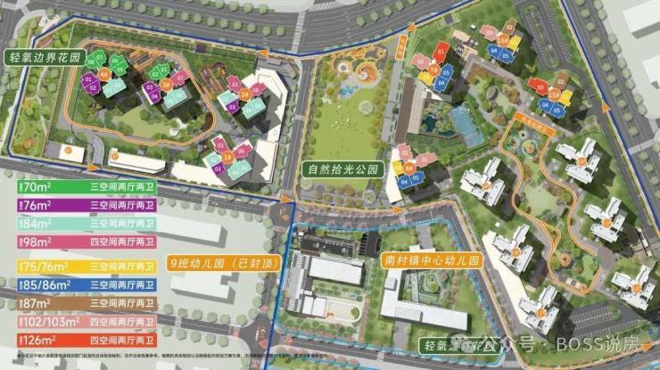主力户型:建面约 76-126㎡ 全南向三至四房,覆盖刚需上车(76㎡三房)、改善自住(98-126㎡四房)全周期需求。