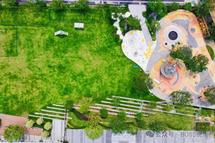 社区双公园:自带约 2.5 万㎡双公园,其中约 8500㎡中央公园已开放,打造露营、围炉煮茶、飞盘、遛狗等休闲场景,二期还规划约 1.7 万㎡艺术美学社区,延续 POD 园林理念,绿化率高,居住舒适度拉满。