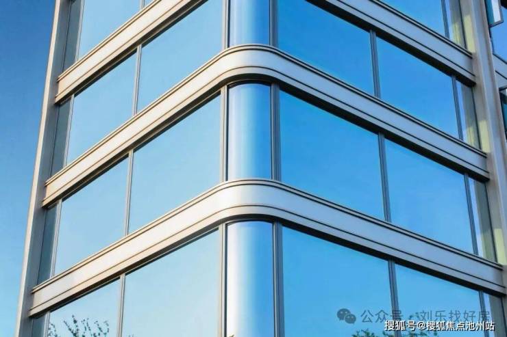 超高幕墙比 ,阳台统一封窗采用大面宽玻璃幕墙搭配金属铝板线条,客厅转角创新采用造价更高的弧形玻璃,以更高成本、更精密工艺,保证立面的美观性,勾勒轻盈、透亮的无界天幕。