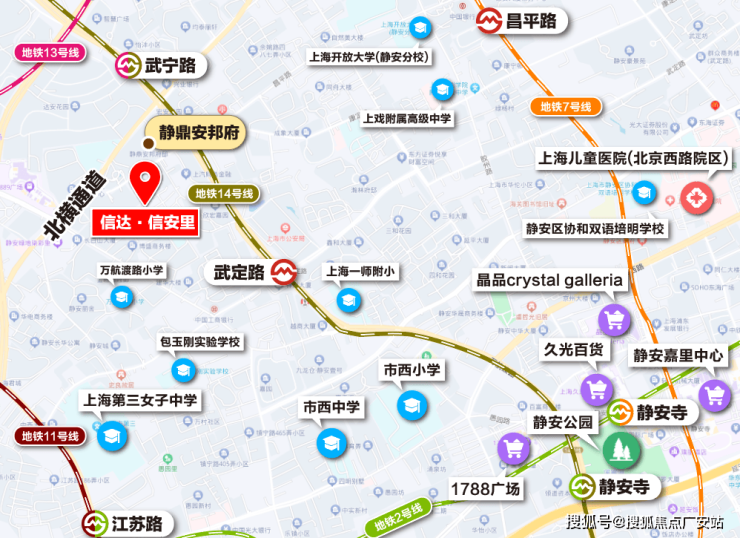 交通配套方面:项目还有着高效的出行系统,增强了通达性。13、14号线都步行可达,武宁路站和武定路站都步行约500米左右。1公里范围内,地铁线路就更丰富了,2号线、7号线的昌平路、隆德路、江苏路、静安寺等市中心地铁站都可步行到达。