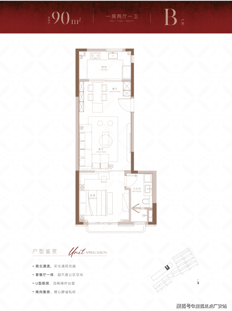建面约90m²尊享1房户型,在100m²的基础上,进一步降低总价门槛的同时,也带来了设计上针对实用性的小巧思。