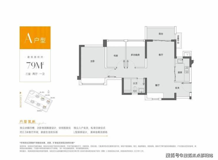 独立冰箱凹槽,宽阔飘窗设计,空间极致化
