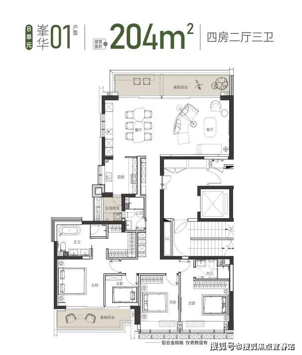 建面约 204 ㎡ 01户型 4房2厅2卫