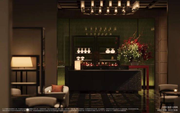 项目打造了 约160米超长中轴,约4000㎡中轴景观,约700㎡落玉水院、 下沉庭院以及私属入户花园。