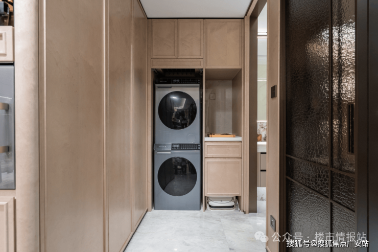 值得一提,该户型还配备专属家政空间,邻卫生间,动线更流畅,洗完澡可以顺手把脏衣服放到洗衣机,更彻底解放阳台,阳台不用晾晒,完全用于观景或志趣空间。