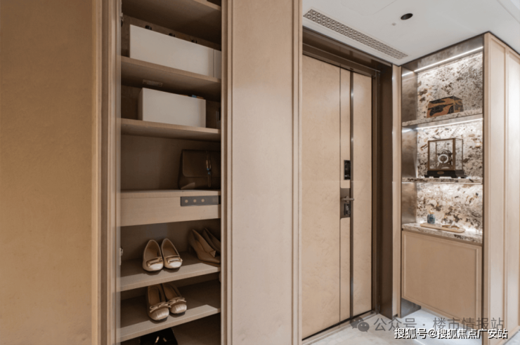项目137户型进门做了一整排收纳柜,堪称收纳界的“精细管家”,分类科学到让每一件物品都能精准归位。