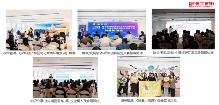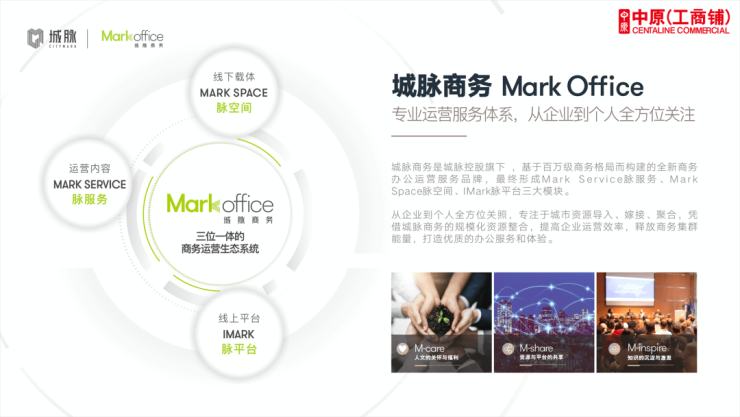 打造专业商务运营体系MARK office,成立产业服务部门,为企业提供政策申报、产业对接等服务,开放共享会议室、路演厅,不定期举办各类大咖讲座、知识培训、主题沙龙等白领福利活动