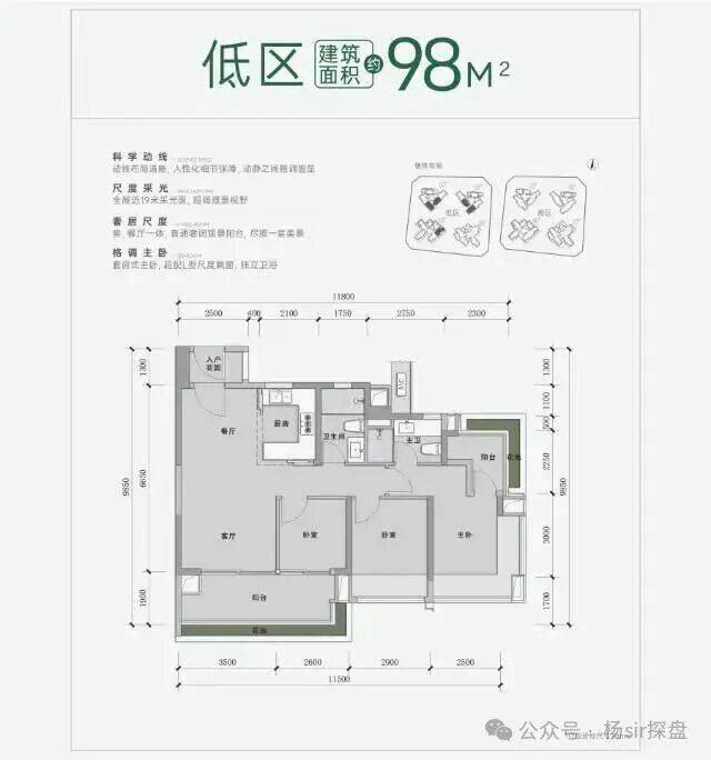 (三)建面约 95㎡三房户型:动静分离 + 19 米采光面,居住舒适