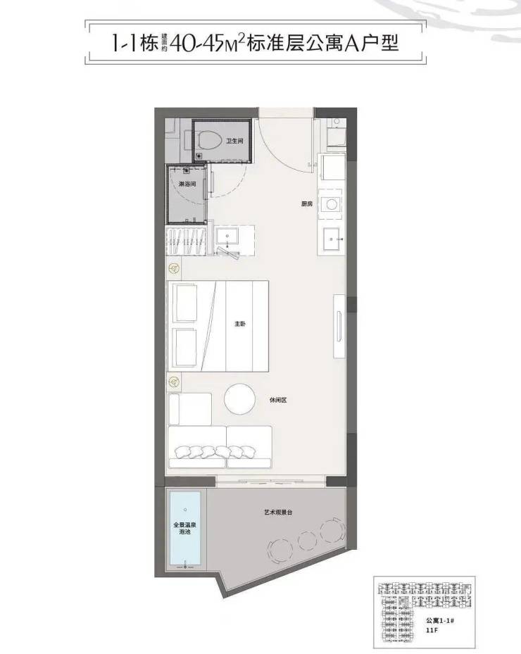 项目计划分三期开发,当前在售产品包括:温泉公寓35-45㎡ ,空中院子45-95㎡