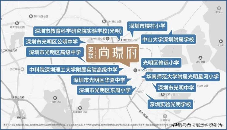 学校配套:安联尚璟府自带5500㎡18班幼儿园,可让孩子享受家门口"目送式"教育。根据2025年光明区学区划分,项目所属楼村社区对口东周小学(省一级,约1.3公里)、华南师范大学附属光明星河小学(约1.1公里)、修远小学(约500米)、深圳小学光明曙光学校(约800米),南科大荔园学校小学部(距离约1.1公里)等优质小学。初中对口华夏中学(36班公立,约1.5公里)、南科大荔园学校初中部、深圳实验光明学校初中部(约2.2公里)、光明高级中学集团(约3公里)等 。
