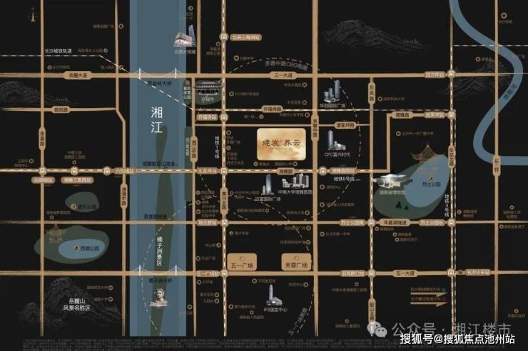 在地段价值上,养云占据了不可复制的优势。项目紧邻芙蓉中路,周边地铁1号线开福寺站约500米,6号线湘雅医院站约800米,出行便捷。同时,湘雅路过江隧道也在建设中。此外,五一广场、IFS国金中心等高端商业环绕,湘雅医院等优质医疗资源近在咫尺,烈士公园、湘江风光带等生态资源丰富,人文与自然完美融合。