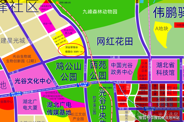 该项目地块在光谷中心城四路板块。位于九峰一路和光谷四路的交汇处。同高新大道直线距离不过500米左右。