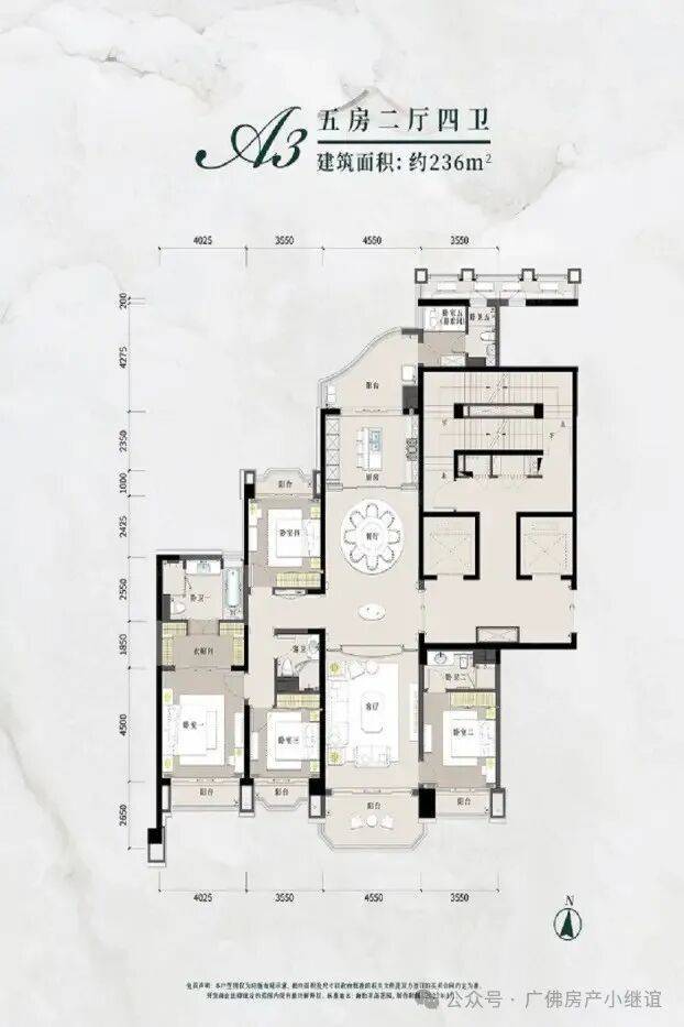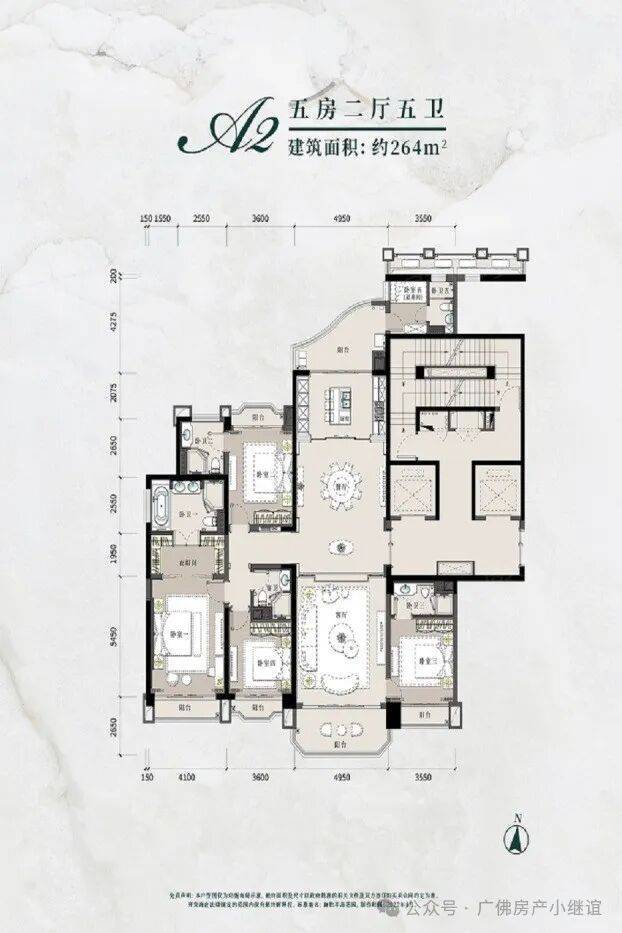 星河湾半岛五期:主推236㎡五房四卫、263㎡五房五卫和317㎡五房五卫(均含工人房),另有部分962㎡和1260㎡的复式产品。