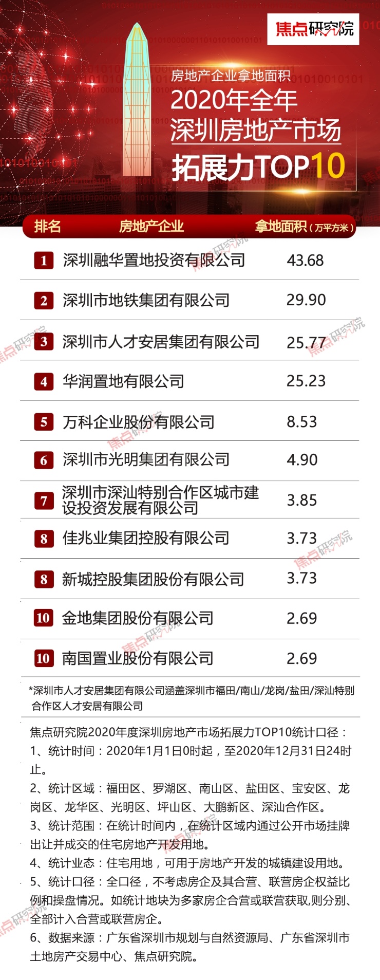 权威发布 | 2020年全年深圳房地产市场拓展力TOP10