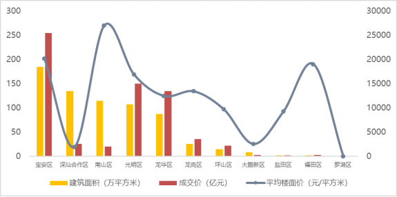 从成交面积和成交金额来看,位于西部的宝安区则是出让宅地面积和金额较高的区。深圳西部的楼市还将继续保持供需两旺的趋势。