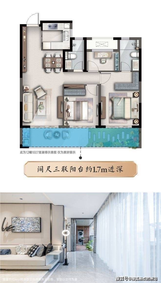 理想的阳台除了最基础的晾晒功能,还需要承载观赏功能。建面约104㎡户型约10m南向三联阳台,进深约1.7m,不但满足晾晒、观赏功能,还能升级全家人的生活空间,除晾晒外,还可以在阳台赏景、养花、泡茶、健身,每天与中式园景作伴,再也不用纠结家里的跑步机放哪。