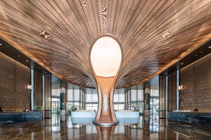 耗时1000小时雕刻拼接的6米高生命之树,极致线条美学的旋转楼梯,360°都有面。