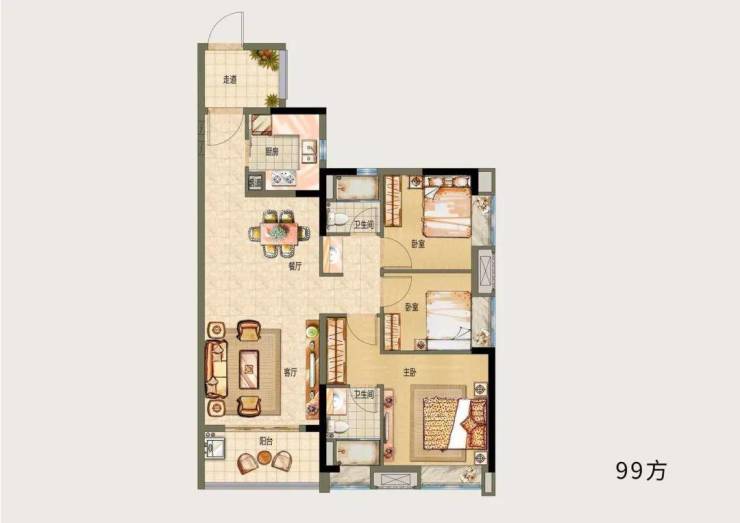 户型B,两房两厅两卫,建面约99㎡
